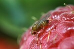 Die Kirschessigfliege Drosophila suzukii schädigt nicht nur Kirschen, sondern auch viele andere Früchte wie Himbeeren, Weintrauben, Pfirsiche oder Heidelbeeren.